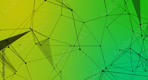 Obraz premium Abstract Network of Black Lines and Dots on Green and Yellow Gradient Background
