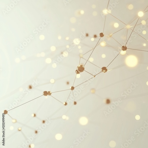© Anat art, Obraz premium Abstract network of connected spheres and lines with glowing elements in soft background. Generative AI