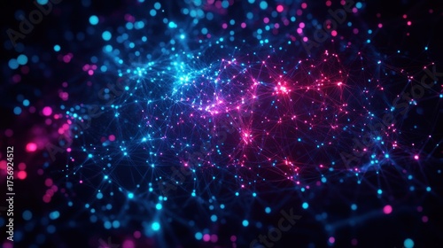 Fototapeta premium Abstract network of glowing blue and pink interconnected nodes and lines...