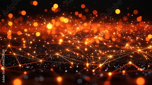 © arsyi_06, Naklejka premium Abstract network of glowing connections and bokeh lights