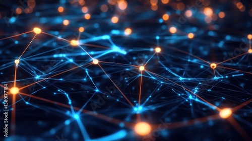 © Nandar, Fototapeta premium Abstract network of glowing connections. Interconnected points and lines