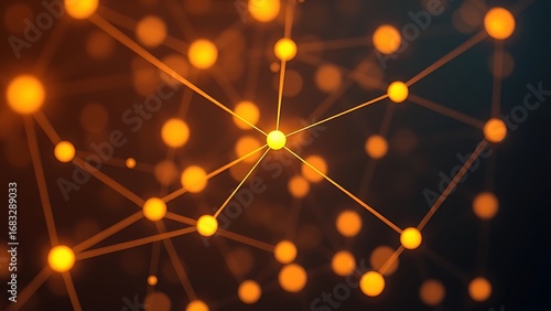 Obraz premium Abstract network of glowing nodes and lines in warm tones against a dark...