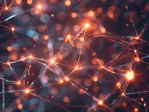 Obraz premium Abstract network of lights and dots on dark background exploration of...