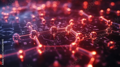 Fototapeta premium Abstract Network: Red glowing nodes and connections illustrating a digital...