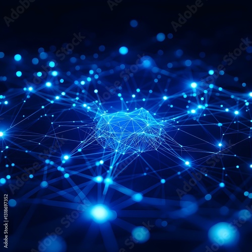 Obraz premium Abstract network visualization, glowing blue nodes and connections, dark background