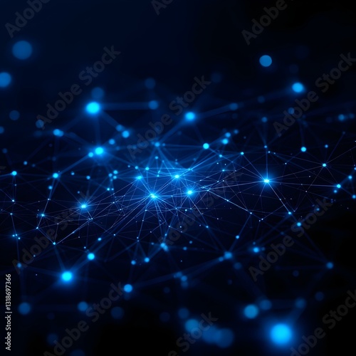 Obraz premium Abstract network visualization, glowing blue nodes and connections, dark background