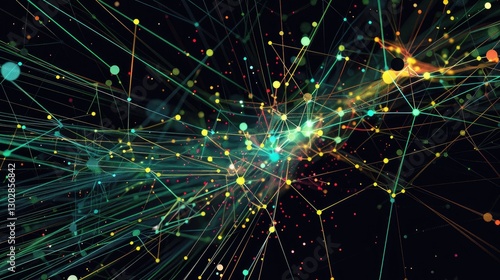 © raining, Obraz premium Abstract Network Visualization with Colorful Nodes and Lines