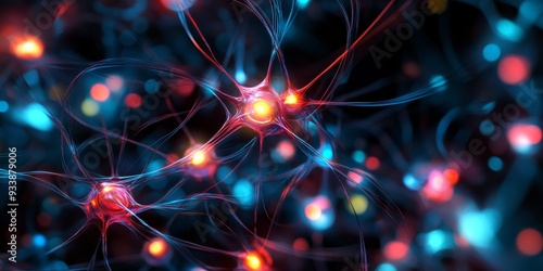 Fototapeta premium Abstract neural network design, glowing with vibrant light trails connecting...