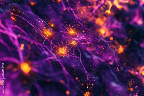 © Chand Abdurrafy, Obraz premium Abstract Neural Network Glowing Purple Orange
