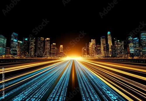 Obraz premium Abstract Night Cityscape with Glowing Data Streams
