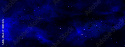 Fototapeta premium abstract night sky space watercolor background with stars. watercolor dark blue nebula universe. watercolor hand drawn illustration. Blue and pink gradient watercolor ombre leaks and splashes texture.