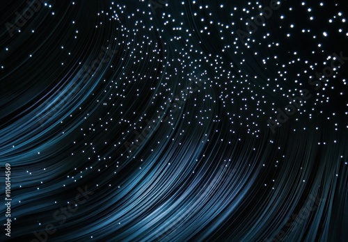 Obraz premium Abstract Night Sky with Stars and Flowing Blue Waves Creating a Dreamy,...