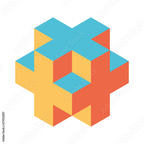 © pyty, Obraz premium Abstract object of cubes. Retro colored. Isometric 3D vector object