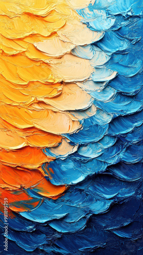 Fototapeta premium Abstract ocean scene with blue and orange gradient