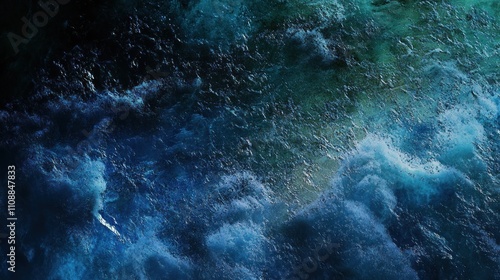 © Penatic Studio, Obraz premium Abstract Ocean Waves Dark Blue Texture