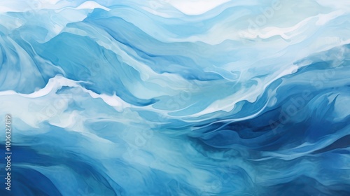 Fototapeta premium Abstract Ocean Waves Painting. Serene Blue Watercolor Textures for Calm Backgrounds and Wallpapers