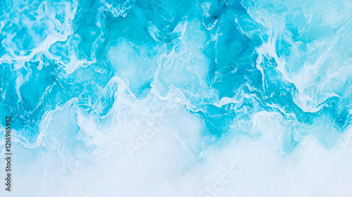 Naklejka premium Abstract Ocean Waves: Turquoise and White Swirl Painting