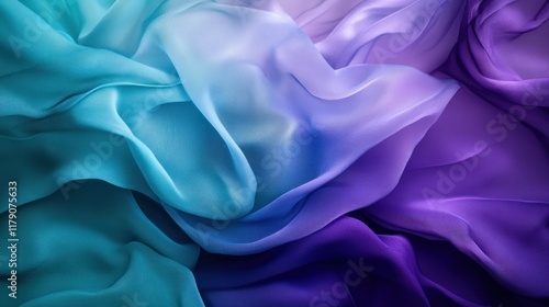 Fototapeta premium Abstract ombre silk fabric texture background in teal, blue, and purple hues.