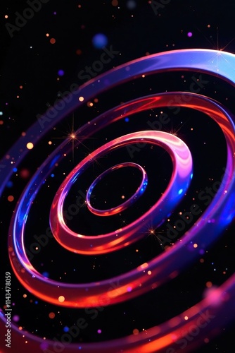 © Atittaya, Obraz premium Abstract open circles spinning in a random, organic pattern on a black background, swirling motion, circles