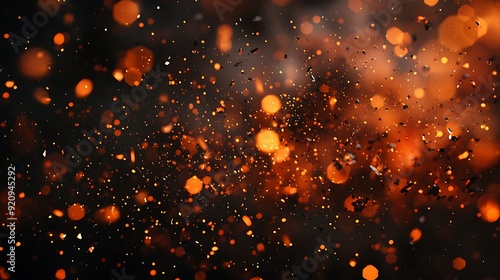 © Adi, Fototapeta premium Abstract orange and black bokeh background with glowing particles.