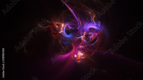 © Klavdiya Krinichnaya, Obraz premium Abstract orange and purple glowing shapes. Fantasy light background. Digital fractal art. 3d rendering.