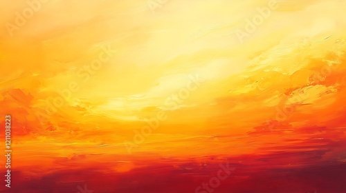 © MASJAB, Fototapeta premium Abstract Orange and Red Sunset Landscape Painting