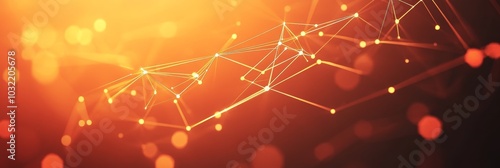 © Andrei, Fototapeta premium Abstract Orange Background With Connecting Dots And Lines. Network Polygon And Sphere Shape.
