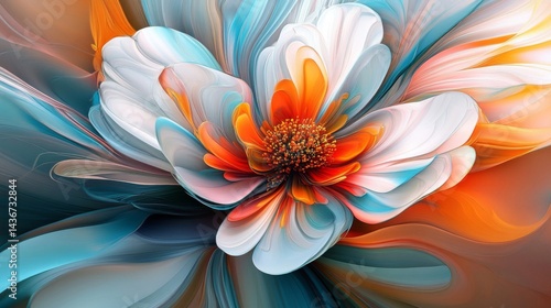Fototapeta premium Abstract Orange Blue White Flower Digital Art