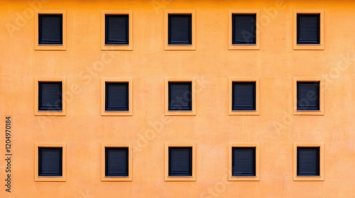 © Flowaiart, Fototapeta premium Abstract Orange Building Facade with Symmetrical Windows