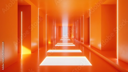© lestari, Fototapeta premium Abstract orange corridor with bright light, futuristic interior, potential use for product showcase
