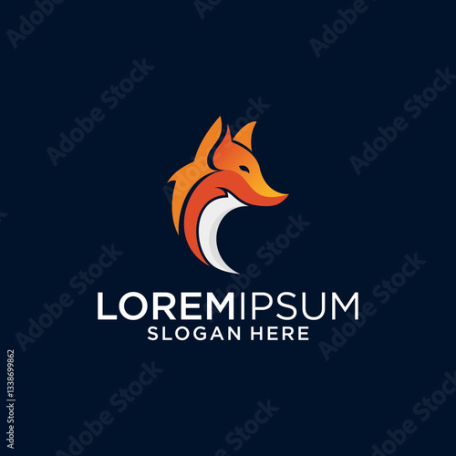 Obraz premium Abstract Orange Fox Logo Design on Dark Blue Background
