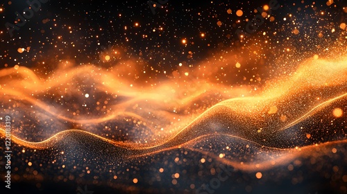 © AI BACKGROUND & ART, Obraz premium Abstract Orange Gold Glittering Waves Background