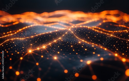 Obraz premium Abstract Orange Network Landscape Digital Art