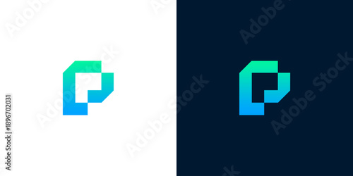 Fototapeta premium Abstract P Letter Logo Design with Blue and Green Gradient, Modern Geometric Shape for Technology and Business Branding