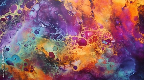 © Psykromia, Fototapeta premium Abstract Painting Combines Purple, Turquoise and Orange Colors, Cosmic Fantasy