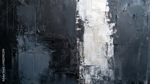 Fototapeta premium Abstract painting in grayscale with textured brushstrokes.