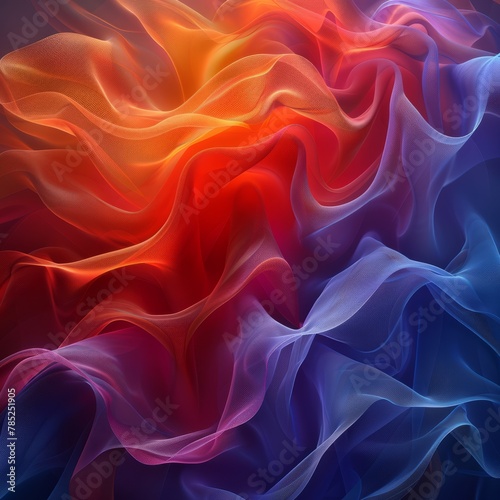 © zz, Obraz premium Abstract Painting of a Red, Orange, and Blue Wave