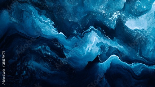Fototapeta premium Abstract painting of flowing blue and white marble designs