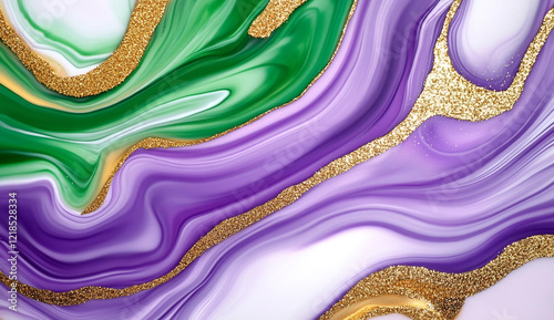 Fototapeta premium Abstract Painting of Purple, Green, and Gold Marble Swirl - Ideal for Home...