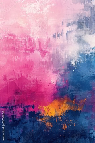 Naklejka premium Abstract painting with vibrant pink, blue, and orange hues blending together,...