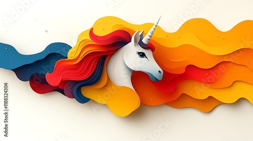 © Ngaji, Fototapeta premium Abstract Papercut Unicorn with Colorful Flowing Mane