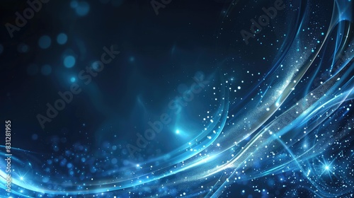 Fototapeta premium Abstract particle curve background in blue with a hi-tech futuristic design, featuring dynamic lines and glowing particles