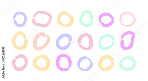 Fototapeta premium Abstract pastel colored shapes, frames. Set of doodle highlights in retro Y2K...