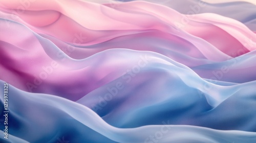 © isend, Obraz premium Abstract Pastel Fabric Waves: A Serene Symphony of Pink, Purple, and Blue Hues