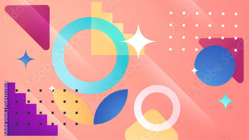 © QalbQuill, Fototapeta premium Abstract pastel geometric shapes and stars suitable for backgrounds, posters, and digital design projects. Colorful and versatile graphic element.