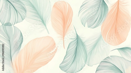 © abangaboy, Fototapeta premium Abstract Pastel Green and Peach Feathers Background