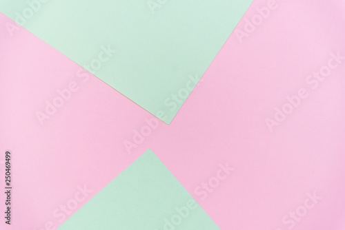 Fototapeta premium Abstract pastel green and pink pastel color paper geometric flat lay background