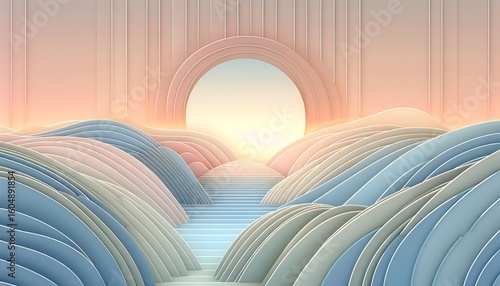 © ALI, Naklejka premium Abstract Pastel Landscape with Soft Light and Arches