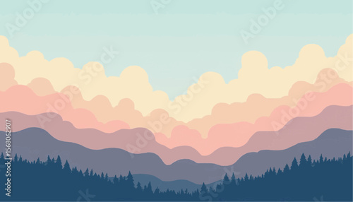 © swdesain, Fototapeta premium abstract pastel mountain landscape with layered hills and cloudy sky