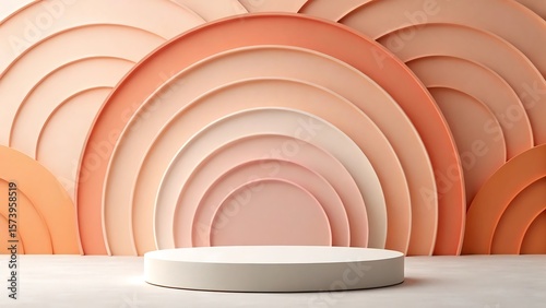 Obraz premium Abstract Pastel Orange and Beige Circular Background with White Product Display Podium